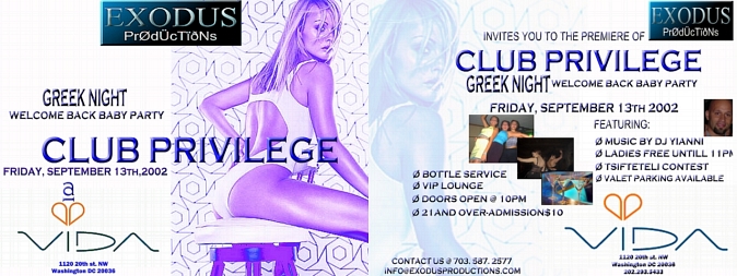 CLUB PRIVILEGE-GREEK NIGHT WELCOME BACK BABY PARTY
