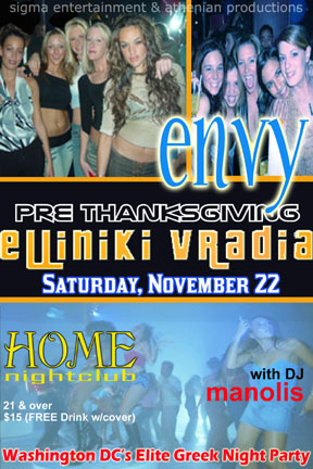 “DC’s Original Greek Night Team” Sigma Entertainment & Athenian Productions Invite you to ENVY's Pre Thanksgiving ELLINIKI VRADIA @ HOME Nightclub