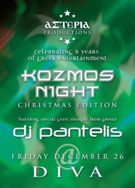 ASTERIA PRODUCTIONS PRESENTS KOZMOS NIGHT "THE CHRISTMAS EDITION & SIX YEAR ANNIVERSARY PARTY" @ DIVA w/ SPECIAL GUEST PERFORMANCE BY DJ PANTELIS