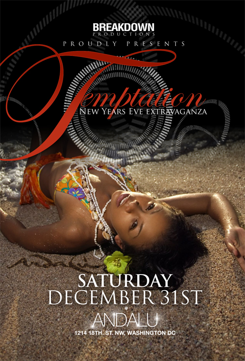 BREAKDOWN PRODUCTIONS PROUDLY PRESENT “TEMPTATION” (International New Years Eve Extravaganza) @ ANDALU SATURDAY DECEMBER 31ST SOUNDS BY DC’S HOTTEST INTERNATIONAL DJ’S: DJ MIXALIS (BREAKDOWN ,XO, ANDALU RESIDENT) & DJ DYNAMIX (ANDALU, SESTO SENSO RESIDENT) SPINNING THE HOTTEST INTERNATIONAL,HIP HOP,REGGAE,HOUSE,TOP 40,80’S $35 * *APPETIZER BUFFET *$3 KAMIKAZI SHOTS B4 2006 *COMPLIMENTARY TICKETS AVAILABLE AT: WWW.GROOVETICKETS.COM OR BY PHONE AT: 877.71.GROOVE(877.714.7668) *COMPLIMENTARY ADMISSION FOR 5 GUESTS * *$500 MINIMUM FOR TABLES OR MORE MICHAEL MILTIADOU (301)580-9108 OR KOSTA RAPTIS (301)370-9895 *SPACE IS LIMITED