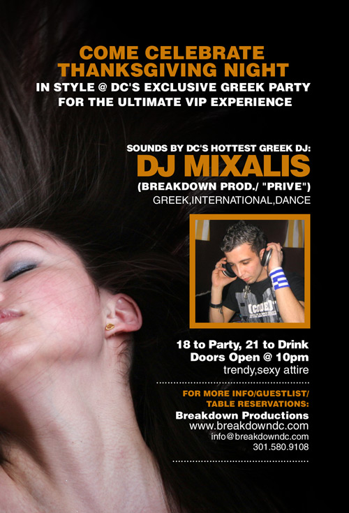 Dc's Hottest Greek Dj: Dj Mixalis (Breakdown Prod., Prive,) along w/ special guest yianni barlas on the toumberleki!!!