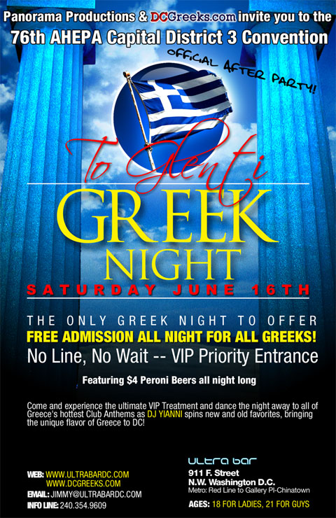 Panorama Productions and DCGreeks.com would like to invite you to the official after party for the 76th AHEPA Capital District 3 Convention at Ultrabar -- Home to DC's Hottest Monthly Greek Party!