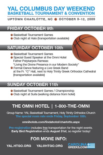 Register securely online using the official Charlotte YAL Columbus Day Weekend Registration Form via DCGreeks.com and pay online with Visa, MasterCard, or mail in a check!
