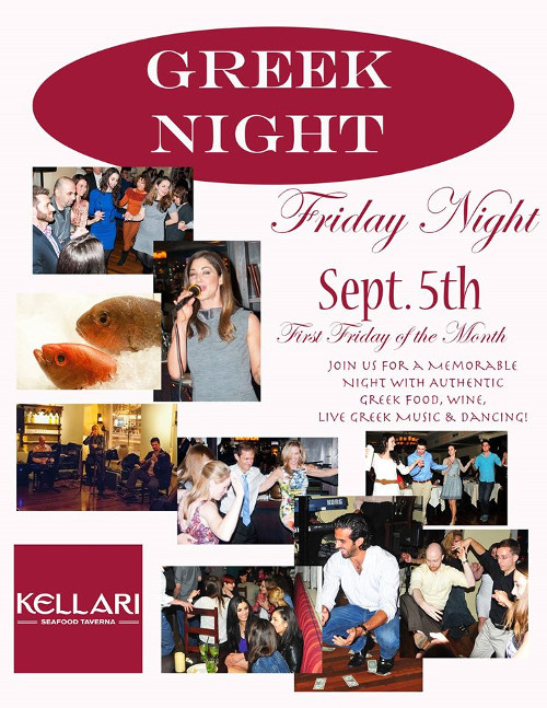 Join us on Friday September 5, 2014 for a memorable night with authentic Greek food, wine, live Greek music and dancing as Kellari's First Friday of the Month Greek Night returns from its summer hiatus!