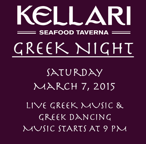 Join us on Saturday, March 7, 2015 for a memorable night with authentic Greek food, wine, live Greek music and dancing at Kellari's First Saturday of the Month Greek Night!