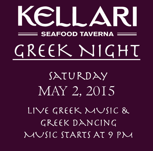 Join us on Saturday, May 2, 2015 for a memorable night with authentic Greek food, wine, live Greek music and dancing at Kellari's First Saturday of the Month Greek Night!