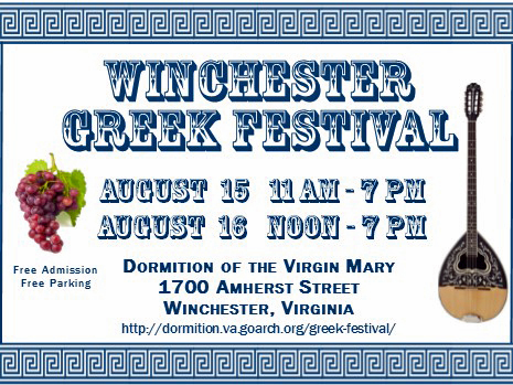 The annual Winchester Greek Festival will take place on Saturday, August 15th and Sunday, August 16th, 2015.