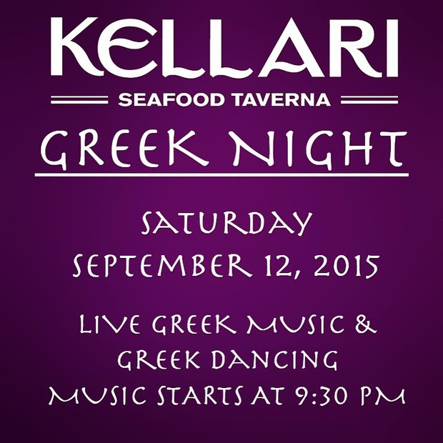 Join us on Saturday, September 12, 2015 for a memorable night with authentic Greek food, wine, live Greek music and dancing at Kellari's First Saturday Greek Night of the Fall!