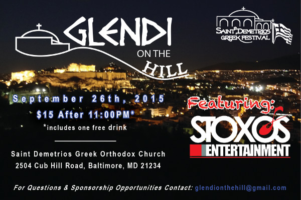 Don't let the fun of the St. Demetrios Greek Festival come to an end! The St. Demetrios Demetrakia Dance Groups Proudly host, for the first time... Glendi on the Hill Featuring Live Music by Guest Appearances by Pontian Musicians