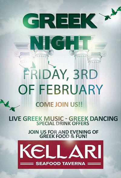 Join us on Friday, December 3, 2017 for a memorable night with authentic Greek food, wine, live Greek music and dancing at Kellari's Monthly Greek Night!