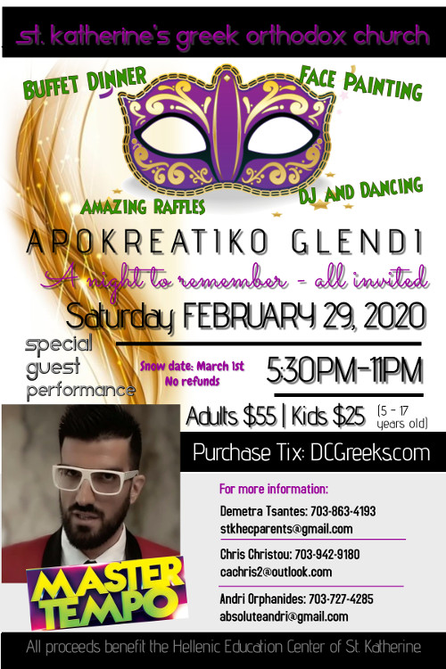 St. Katherine's Apokreatiko Glendi 2020 with a Special Guest Performance by Master Tempo