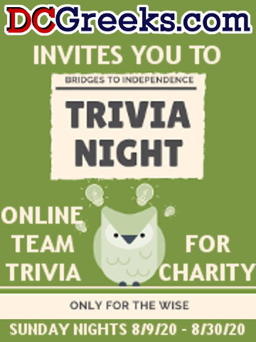 As part of our sponsorship, we here at DCGreeks.com are opening up 75 player slots a week for an hour of online trivia at a special $15 price per player per game (a $20 discount off the $35 regular registration), with all proceeds going directly to Bridges to Independence. The games themselves will be played using Crowdpurr and Zoom, which will allow for our followers to play individually and as part of a team. We've already donated $1500 to this cause and we're encouraging individual players to donate what they can to help Bridges to Independence lead individuals and families out of homelessness and into stable, independent futures!