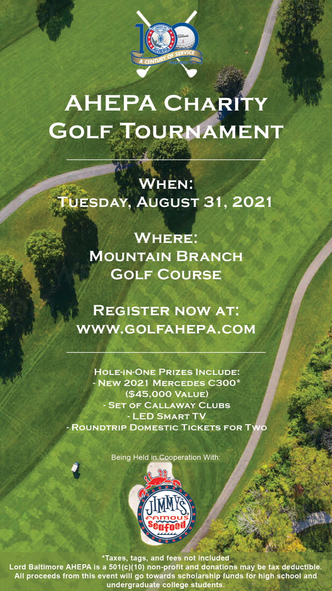 Golf Tournament is hosted by the AHEPA Lord Baltimore Chapter and is held in cooperation with Jimmy's Famous Seafood.