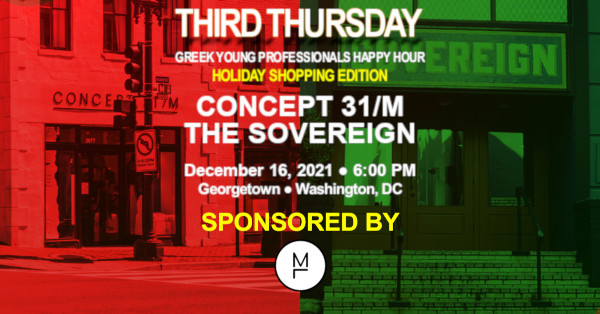 Join us on Thursday, December 16, 2021 starting at a special early start time of 6:00 PM as the Third Thursday Greek Young Professionals Happy Hour series heads to Georgetown with a stop at the Modern Lusso pop-up shop inside Concept 31/M followed by Happy Hour at The Sovereign starting at 7:00 PM.