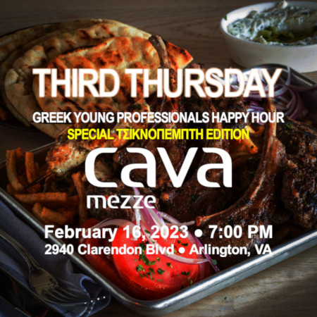 Join us on Thursday, February 16, 2023 starting at 7:00 PM as the Third Thursday Greek Young Professionals Happy Hour series visits Cava Mezze in the Clarendon neighborhood of Arlington, VA for a special Τσικνοπέμπτη Edition. While most people know Cava from their growing fast casual empire, Cava Mezze is their original mezze-style small plates concept which is a perfect location to celebrate the last Thursday one can eat meat before Lent.