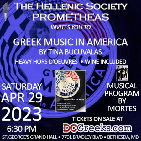 PURCHASE TICKETS Tina Bucuvalas is curator of art and historical resources with the City of Tarpon Springs. She is president of the Florida Folklore Society and served as state folklorist and director of the Florida Folklife Program of the Florida Department of State. She is coauthor of Just Above the Water and South Florida Folklife and editor of Greek Music in America and The Florida Folklife Reader, all published by University Press of Mississippi. Mortes is an authentic Greek Band that plays all the "colors" of Greek Music. Spyros Koliavasilis with his oud, kemane, and magic voice, Theologos Fragkos with his magnificent playing of the bouzouki and laouto, and Stavros Blicas, a real virtuoso in the guitar, are musicians with much passion and soul. NOTES: