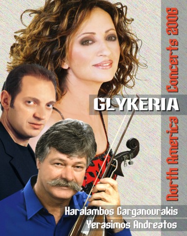 On Sunday, March 19th, 2006, Asteria Productions and Breakdown Productions bring Greek superstar Glykeria along with Gerasimos Andreatos and Haralambous Garganourakis, for a one-night-only event at the Sheraton Premiere in Tysons Corner, VA. Tickets for this special Sunday evening show are $70 and $85 and can be purchased online through DCGreeks.com. A singer who needs no introduction, Glykeria has been delighting Greek audiences since her rise to stardom in the early 1980s. Invited to share the stage by George Dalaras himself, Glykeria has continued to perform in over 100 concerts worldwide in support of over 25 gold and platinum albums. This is her third visit to DC, having performing at The George Washington University in 1994 and more recently at the Hyatt Regency in Crystal City, the latter event also hosted by Asteria Productions. She is joined on this tour by Gerasimos Andreatos, also from the Dalaras tradition, and Garganourakis, one of the best Cretan lyra players and singers. The show is going to be at the Sheraton Premiere, in Tysons with doors opening at 6:00 pm and the concert starting at 7:00 pm. Click here for the Events Calendar Listing on DCGreeks.com, which contains full details on this show.